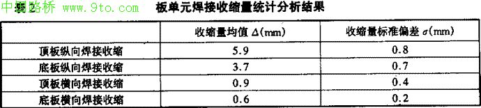 U型助焊缝为角焊缝,所以横向收缩量远远小于一般对接悍的横向收缩量。从测量结果可以认为,正交异性板单元的焊接横向总收缩量一般不超过