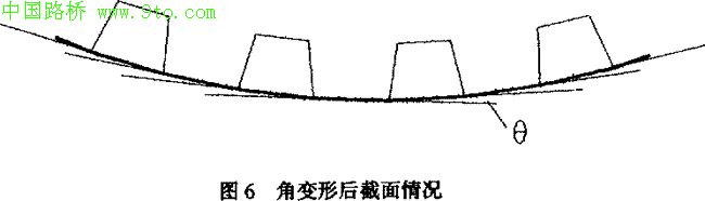 正交异性板单元U型肋焊接时会在焊缝处产生角变形,变形后的截面情况如图6所示,为了有效地采用反变形焊接工艺控制角变形,必须准确了解角变形量θ的大小。