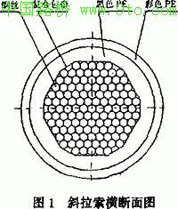 平行钢丝索是将若干根钢丝平行并拢,同心同向作轻度扭绞,扭绞角2°~4°,再用包带扎紧,最外层直接挤裹PE护套作防护,这种索挠曲性能好,可以盘绕,具备长途运输的条件,宜于在工厂中机械化生产。目前平行钢丝索普遍使用φ5或φ7钢丝制作,要求钢丝的抗拉强度不低于l600MPa。斜拉索防腐问题,从斜拉桥诞生起就一直是人们关注的问题,脱胎于
