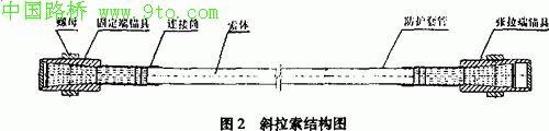 经左旋轻度扭绞而成,两端配以冷铸锚,一端为固定端锚具,另一端为张拉端锚具(见图2),