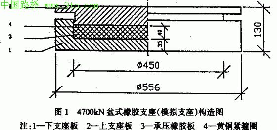 根据欧洲标准型式试验时支座承压橡胶板的直径通常有φ450mm和φ600mm两种,鉴于我们的试验能力,采用φ450mm的承压橡胶板作为设计模拟支座的依据。