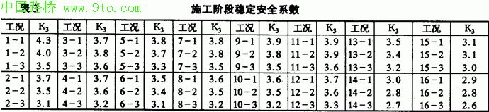 计算稳定安全系数,则工况1~16中的第二子工况的K2在1.3~1.4之间不能通过,这将使合理的施工加载方法无法采用,丫髻沙大桥的顺利建成,充分证实了由K3判定施工稳定安全性的正确性与合理性。