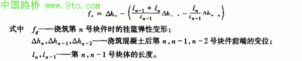 注意Δhn是混凝土底模前端的变位,是本节段挂篮定位标高与混凝土后标高的差值,它包括由已施工节段变位引起的刚体位移和挂篮的弹性变形两部分。