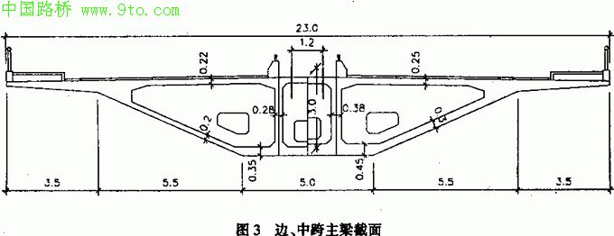 主梁采用55号混凝土。主梁断面见图3。