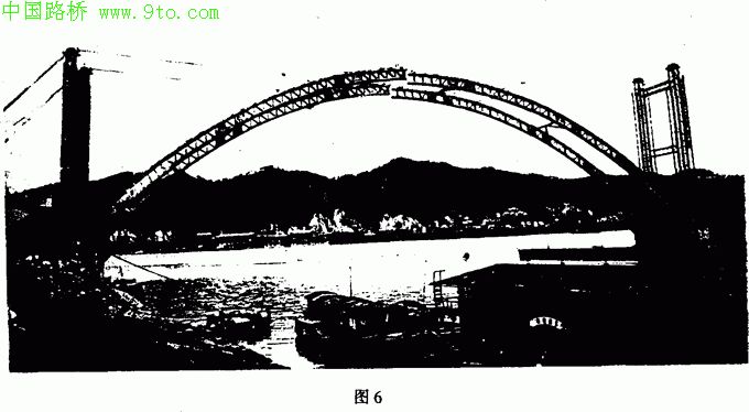 将液压提升技术成功地应用于广西梧州桂江三桥钢管拱助竖直转体施工(图6),提供了一种新型的施工设备、技术。施工实践证明,这是一项高效低成本的施工方法。我们将继续与广大工程界一道为推广应用这项新技术、新方法、推动桥梁施工技术的发展作出我们应有的贡献。