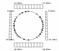 5)衬砌计算中考虑接头刚度的影响以及拼装应力、盾构千斤顶力的影响等施工荷载。