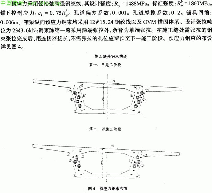 由于预应力引起的径向力(崩出力)的作用,腹板箍筋予以加强,从而起到增添防崩箍筋的作用,为方便施工,可不专门设置防崩筋。