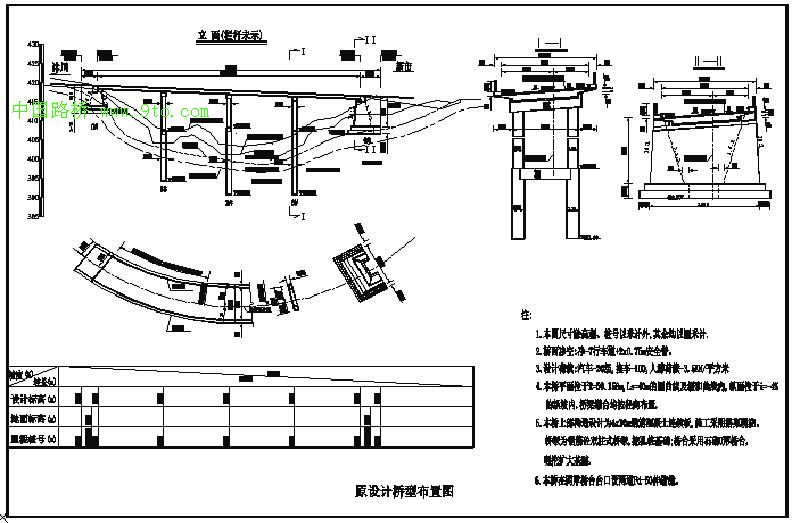 1、结构布置:上部结构为4-16米钢筋混凝土连续板,下部结构采用双柱式墩、桩基础,重力式U型桥台、扩大基础。