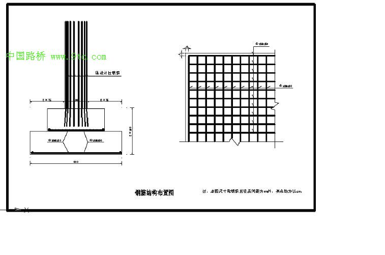 选用φ16螺纹钢筋,间距150X150mm,分上下两层布置在一、二阶基础底部,同时,墩柱钢筋深入二阶基础底部,具体布置详见《钢筋结构布置图》。