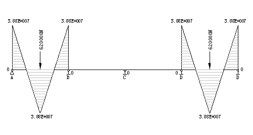 系梁受力计算模型和弯矩计算如图(由VisualFE超静定计算):