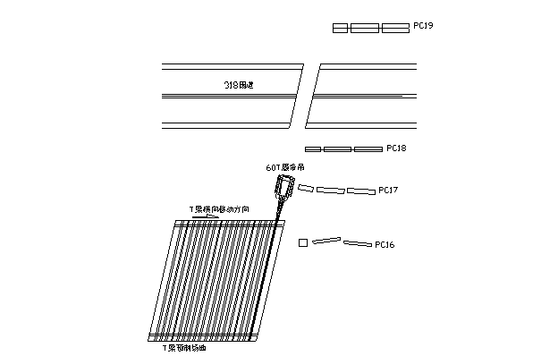 在PC19#墩北侧(318国道北侧桥墩)修筑一条7m宽的临时便道,吊装时供来住车辆通行,见下附图:
