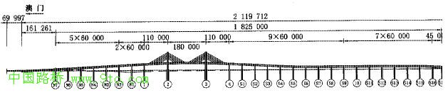 (2)新颖别致具有鲜明地域特征的“m”造型的主塔设计技术。主塔的“m”造型象征MACAU的第1个字母,也寓意澳门的3个半岛紧密相联,同时也象征澳凼第3座大桥,主塔造型别致,为国际首创,促进了现代桥梁技术进步。澳凼三桥必将成为澳门的又一亮点。