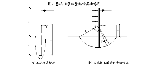 本基坑设计时,首先按先抽水再挖土的干挖法设计,对选用钢板桩长度、基坑稳定性能进行验算。