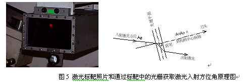 3.2描述盾构机姿态的要素 描述盾构机姿态的参数有:刀头坐标(xF',yF,zF):水平角A;倾角α;旋转角κ。如图4所示。 由盾构机姿态及设计隧道中线,可推算如下数据:刀头里程:刀头、盾尾三维偏差;平面偏角(Yaw):盾构机中心轴线和设计隧道中线在水平投影面的夹角;倾角(Pitch):盾构机中心轴线和设计隧道中线在纵向(线路前进方向)竖直投影面的夹角;旋角(Roll):盾构机绕自身中心轴线相对于水平位置旋转的角度。3.3激光导向系统原理和工作过程 激光导向系统的英文本义是“盾构指导系统”,在盾构施工中有指导隧道掘进、指导环片安装、数据采集等多种功能;其中指导掘进是核心功能。本文仅研究激光导向系统指导掘进的原理。 在掘进过程中,激光导向系统按如下流程工作:由系统控制激光全站仪实时测定盾构机棱镜的三维地面坐标;同时发射激光自动照准激光标靶,并自动记录激光水平方位角;标靶内部光栅捕获激光的入射角,间接得到盾构机纵轴水平方位角;利用安装在标靶中相互垂直两立面内的两把测角仪测得盾构机倾角和旋转角。利用以上参数及刀头、盾尾、棱镜中心三者的几何关系,通过空间坐标变换解算刀头、盾尾中心坐标,结合设计隧道中线参数计算盾构机与隧道中线的相对偏差。依据各偏差值拟合改正曲线,由PLC根据修正曲线控制机械装置,调整各油缸杆在不同时刻的伸长量。如此反复,指导盾构机掘进。该导向过程包括如下6个步骤。3.3.1棱镜P点坐标和旋转参数的获取: P点坐标(XP,YP,ZP):由系统控制架设在隧洞顶部吊篮上的激光全站仪自动测量。盾构机水平方位角:设自激光全站仪发射到激光标靶的激光束的水平方位角为A0,光栅根据折射率捕获的激光入射角为θ。则系统获取盾构机方位角为A=A0-θ(见图5)。 竖向倾角α和旋角κ:依靠ELS中的两只相互垂直的测角仪测得。本文规定A顺时针旋为正,α、κ逆时针旋为正。