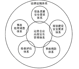 其中法律法规体系是指专门针对城市轨道交通行业安全管理的法律法规或其他法律法规中的有关条款,具有规定性、稳定性和强制性特点,是城市轨道交通综合安全管理体系正常运作的前提和保证。