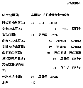 表2一些城市2000 年4 月15 日前购买或订购的轻轨车辆数量