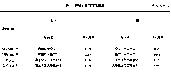 表3 高峰时间断面流量表 单位:人次/ h