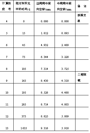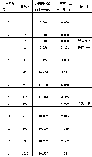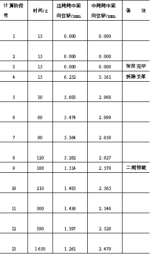混凝土徐变是依赖于荷载且与时间有关的一种非弹性性质的变形。混凝土徐变是一种非线性行为,由于桥梁结构中混凝土的使用应力一般不超过其极限强度的40 %~ 50 %, 可按线性徐变理论计算结构的徐变变形;在计算中混凝土的弹性模量假定为常值Ec = 35.5 GPa ;桥梁在结构自重和施加预应力时的变形按弹性方法计算。