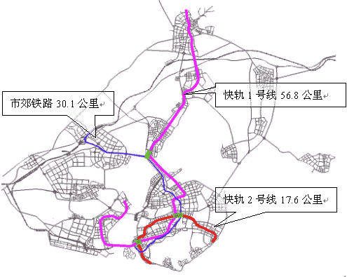 相对稳定的核心线网与灵活的弹性扩展线网衔接、配合,形成稳定性和开放性兼备的轨道交通线网方案,适应城市发展的不同模式,其中核心线网对整个轨道交通线网的结构起稳固作用。快轨线网通过布局合理的大型换乘枢纽统一在一起,火车站、机场等通过区域换乘枢纽与轨道线网相连接。快轨线网、市郊铁路、常规公交及其它交通方式相互融合、相互补充,高质量地满足出行的不同需求。