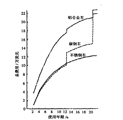 (3) 不锈钢车的维修费用和总费用比铝合金车低。