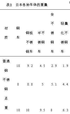 表2 日本各种车体的重量