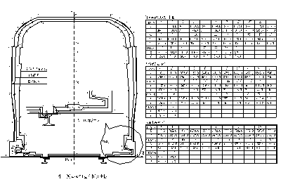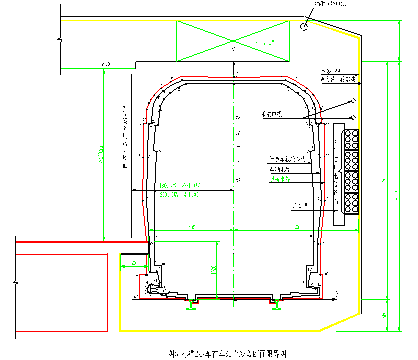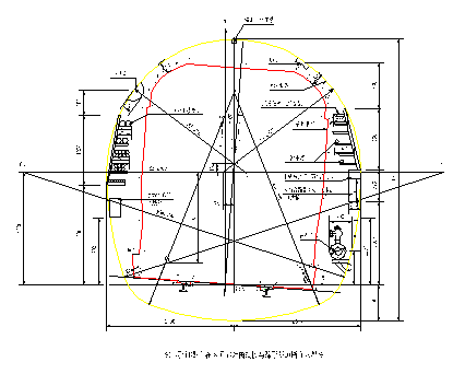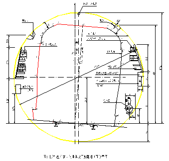 (2) 马蹄形隧道对于马蹄形隧道,由于初步设计阶段确定的限界净空有一定余量,加之对设备布置位置做一适当调整后,可以留出一定安全空间,调整后,限界净空相对圆形隧道紧张一些,通过对本线限界最紧张的500m曲线半径段限界净空检算后,标准B型车也能满足安全行车需要,也即对本线工程区间矿山法施工的马蹄形隧道断面,在不需要修改设计前提下,该限界断面也能满足标准B型车行车安全需要。见图3。