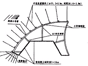 (2) 型钢钢架安装前必须先打锚杆,挂网后先喷一层混凝土,然后再安装型钢钢架,型钢钢架与环向砂浆锚杆或中空注浆锚杆相焊接,焊接后按设计要求厚度分层喷射混凝土。