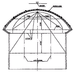 (2) 拱腰及拱脚采用<108 钢管作对撑,钢管两端焊16mm 钢板作托和底脚,若对撑底板受水浸泡且土质松软时,将底板喷混凝土封闭,并垫5cm 厚木板加大基础,拱脚处按下倾角60°打入215m 的锁脚锚杆(<22) 或钢管(<48) ,拱架与围岩间采用木楔加紧。若围岩极软弱且侧压力过大, 拱顶采用<108 钢管加强支撑并与拱腰支撑管脚连接,拱脚支撑底脚亦可与拱腰底脚采用钢管连接并喷混凝土进行封闭,形成两个封闭环结构,以加强初期支护结构的稳定性(见图3) 。