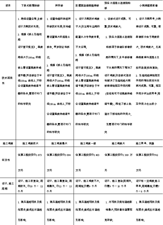 4. 2 各设计方案分析比较根据该桥设计需重点考虑的几个因素,各设计方案分析比较见表1。