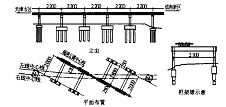 为此,决定跨疏港公路桥位于曲线及部分直线上,曲线半径左线为550 m 、右线为650 m , 左右线线间距由4. 33 m 渐变为3. 6 m , 线路与疏港公路的斜交夹角为24. 7°。