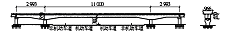 (4) 预应力混凝土连续刚构桥方案采用(45. 9 + 78 + 45. 9) m 预应力混凝土连续刚构桥,跨度选择考虑中跨跨越现状双向6 车道(25. 2 m 宽),现状慢车道及远期规划增建的一个快车道和慢车道在边跨通过。由于桥墩占用现有慢车道,两侧慢车道需作局部拓宽改移。该桥采用双壁墩结构,墩宽 5. 66 m , 壁厚0. 8 m , 两薄壁墩间净距0. 7 m , 为减小墩身截面,墩身采用聚丙烯网状纤维混凝土。连续刚构跨中梁高2. 0 m , 支点处梁高4. 5 m , 梁部采用三向预应力体系,该桥方案如图5 所示。