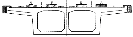 长轨温度应力及桥上附加应力等的总和应在钢轨承受能力允许范围以内。桥梁无缝线路长轨水平附加力还要通过梁部、支座, 传至桥墩上。桥墩与基础需要计算此项附加水平力。轨道交通高架桥采用多联多跨连续梁, 上述桥上钢轨附加力会相应增加很多。如两联三孔连续梁, 每孔30 m , 从一联的固定支座到另一联的固定支座之间的“ 温度伸缩跨度”长达90 m, 接近无缝线路不设钢轨伸缩装置的极限长度。而钢轨伸缩接头是无缝线路运行养护的薄弱环节, 应尽量减少。假如改为六孔30 m 简支梁, 无缝线路即可全长通过, 不需钢轨伸缩接头。所以城市轨道交通上部结构一般采用大批短跨简支梁, 如同国外高速铁路架空桥梁均采用多跨简支梁的理由一样。多跨简支梁还可使墩梁结构标准划一, 便于施工、养护、管理。简支预应力梁就地现浇, 根据施工前后顺序, 需有若干孔梁纵向预应力筋设体内自锚, 其余各孔可在梁端张拉纵向预应力筋, 然后混凝土封端。