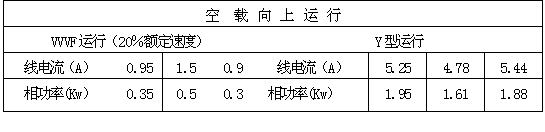 由于在输送乘客的2.8分钟时间内,无论是Δ型运行,还是VVVF运行,都是以100%额定速度运行,其能耗比较接近,因此我们只讨论在3.2分钟空载情况下Y型运行状态和20%额定速度的VVVF运行状态时的功耗。