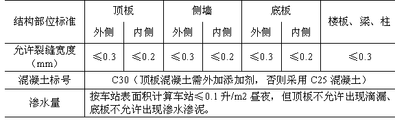 车站各部位混凝土结构裂缝控制标准(上海地铁2号线工程)