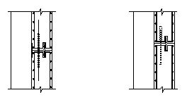 (2) 对于侧墙结构诱导缝构造(指双层衬砌)分中楼板以上和以下,从地铁车站结构诱导缝开裂的原理分析,由于地下混凝土结构越接近地面部分,其内外温差较大,故一般顶板裂宽度大于底板裂缝宽度,同样侧墙上半部分裂缝宽度大于下半部分裂缝宽度。根据这一特点,侧墙下半部分诱导缝设计为剪切杆形式,其主要功能是在设放结构纵向应力的同时,还帮助控制车站竖向的剪切变形;而对于上半部分,诱导缝则设计为剪力筋形式,使其既有抗剪作用,又能起到部分抗弯和控制裂缝宽度的作用(见图4a、b);