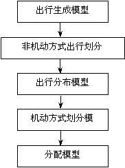 鉴于现状居民出行主要以机动化方式为主,自行车方式比重较少,而且有继续减少的趋势,我们这次模型研究在“四步骤”交通预测模型的基本框架下,采用了步行和自行车方式预划分,机动化方式先分布、后划分的具体步骤。