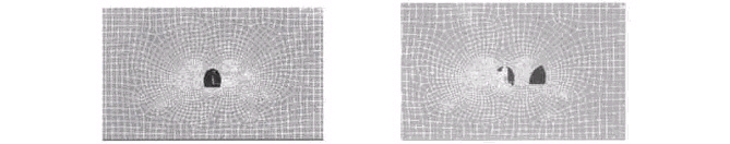 1. (1) 中导坑的开挖就是一般的小洞径隧道开挖, 它引起的围岩位移和应力的变化与单洞隧道的情况一致。