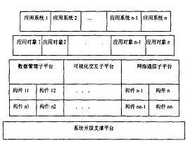 基于开放式支撑平台,并采用面向对象技术的分组分层分块式,中间层为构件块的软件体系结构(如图2 所示) 。此分层平台体系设计旨在保证平台的中性结构,支持应用层面上多样性的各应用系统。