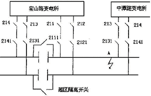以宝山路为例,从211 发信号给中潭路213 开关跳闸;从212 发信号给中潭路214 开关跳闸; 从213 发信号给虹口站211 跳闸;从214 发信号给虹口站212 开关跳闸; 宝山路框架保护动作时, 中潭路213 、214 跳闸,虹口站211 、212 跳闸。试验这些信号时,要注意发送器、接收器上的灯光显示。除此之外,还要进行宝山路变电所退出运行以后,中潭路和虹口站之间信号的发送。这种情况试验时,要将宝山路越区隔离开关合上,这时,宝山路联跳装置将收到虹口站的信息发送到中潭路,收到中潭路的信息发送到虹口站,起了一个桥梁作用。