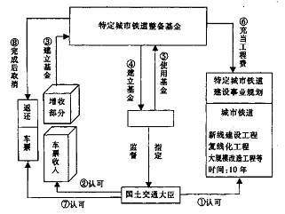 在解决大城市交通拥挤问题, 促进铁道的复线工程和大规模改造工程, 1986 年日本制定了“ 特定城市铁道建设促进特别措施法”, 把工程费的一部分附加在车票上, 计算为损金, 用增收的部分建立免税的“ 特定城市铁道建设基金”, 用于工程建设, 即为特定城市铁道建设基金制度, 基金额度可达认定工程费的50% 。1994 年又对特别措施法的一部分进行修正, 扩充完善了这一制度。这一制度主要面向东京、大阪及名古屋等大城市圈中的客运轨道交通设施的一体化、大规模的新线建设和旧线改造及复线化工程。该制度能把部分工程费记入损金, 以免税的方式保证建设资金, 减少工程借款及相应的利息, 以减少事业费; 建成后把与基金等额的资金作为收益返还到车票上, 降低了将来的票价; 基金造成的票价上升仅限于建设对象区间, 对不使用对象区间铁道的旅客没有影响。另外, 该制度还将铁道事业收益的保留金或原价折旧专用金的内部保留金作为建设资金, 减轻、平衡了借款负担, 促进了城市铁道事业的建设和发展。城市铁道建设基金制度的组织运作详见图1。