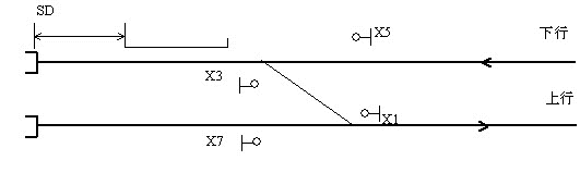 其中列车的进站时间t2与ATP安全保护距离SD有关;列车出发并出清X3→X1进路中第一个道岔区段的时间t5与道岔的侧允许通过速度有关;列车的停站时间t3与客流有关。