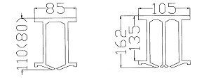 共有两种类型,一种高80mm,另一种高110mm(截面2213mm2),用弹性夹来固定接触线,汇流排制造长度为10~14m,结构示意图如下。