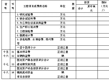 投资估算费用组成及章节划分共分四个部分,固定资产静态投资、固定资产动态投资、机车车辆购置费和铺底流动资金。章节划分见“投资估算章节表”表1。