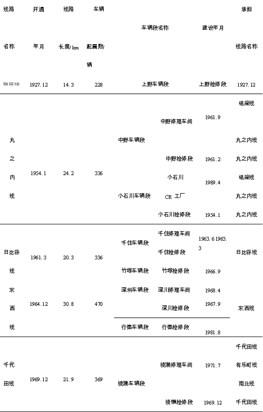 表4 东京营团地铁车辆段一览表