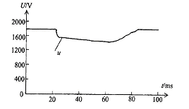 用1 台200 MHz 的数字示波器(带记忆和打印功能) 来记录电压和电流的波形,示波器的2 路探头分别连接到电压变换器和电流变换器上,并设定电流达到400 A 时触发,记录电流和电压波形。