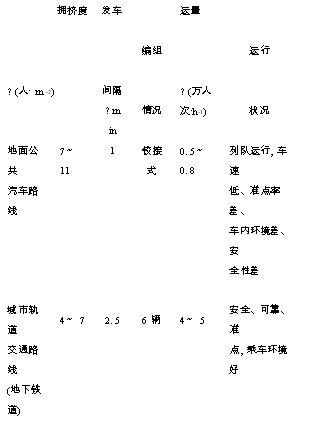 表1 城市轨道交通路线与地面公共汽车路线的运能比较
