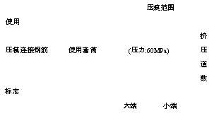 挤压施工主要机械设备有压模、套筒、挤压,使用前首先检查压模与套筒是否配套,挤压机油压表及油泵是否完好。