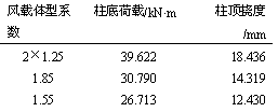 表3 中的计算结果未考虑悬挂重量、导线横向力、检修重量等情况引起的荷载。可以看出,导线作用于支柱底部的弯距值,风载体型系数为1.55 时比2×1.25 时降低约30%,柱顶挠度降低约33%。
