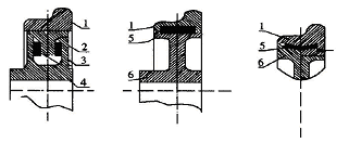 图2 弹性车轮结构示意图1-轮箍; 2-T 型环; 3-环状橡胶; 4-外轮芯; 5-橡胶体; 6-轮芯。度控制阀、差压阀、附加空气室及相应的管道系统组成。空气弹簧设有节流孔, 可起到中央垂直减振器的作用。在摇枕和构架之间安装高度控制阀, 控制车体载荷变化时空气弹簧内的空气压力, 使空气弹簧的高度保持基本不变, 确保空重车情况下车辆地板面的高度在容许的变化范围之内。用差压阀将转向架左右两个空气弹簧联系在一起, 使两组空气弹簧的压差控制在允许范围之内。