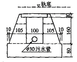 管线过轨首选套涵防护。考虑到施工过程中不切断管线,套涵一般采用现浇钢筋混凝土箱涵、浆砌片石或混凝土砌筑的盖板箱涵,而不用预制管节的圆涵,图1 是某污水管套涵的断面。当有多种管线集中过轨时,一般应分类设置套涵,分别过轨。